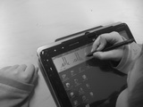 | This is how a normal computer becomes an electronic exercise book: Turn the screen carefully and fold it onto the keyboard. A special pen is used for the writing. And of course we supply an additional keyboard. |